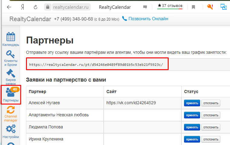 | | Администраторы, менеджеры, горничные, с разными правами доступа, смогут отслеживать изменения в Realty Calendar в режиме online (обращаю Ваше внимание, что приглашать сотрудника Вам необходимо с ПК и принимать приглашение Ваш сотрудник должен тоже с ПК, а не с телефона) | | | | | | | | Отправить ссылку на Календарь своим партнёрам или агентам